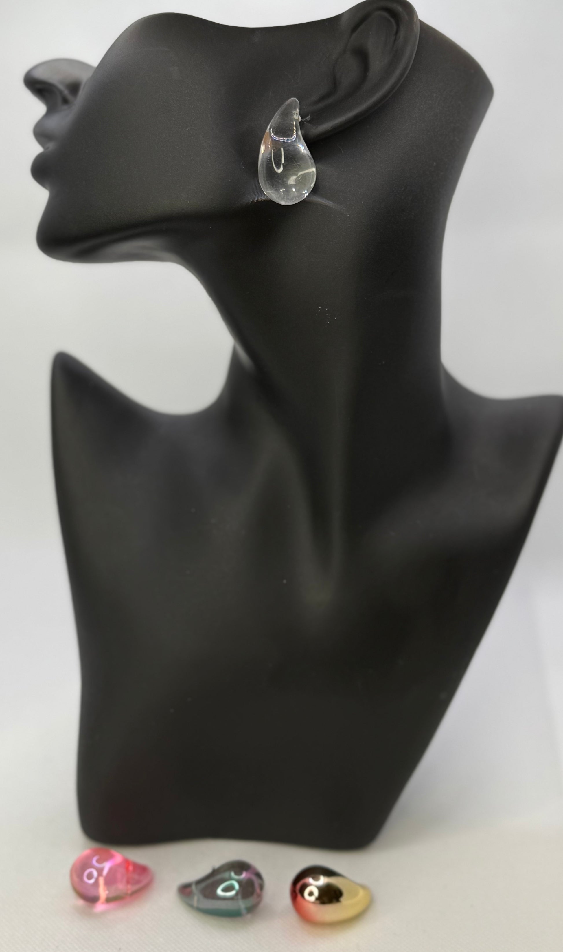 Grab this steal before it’s gone. 4 pair of stud earrings for only $10: clear, pink, gold ombre, oil spill.