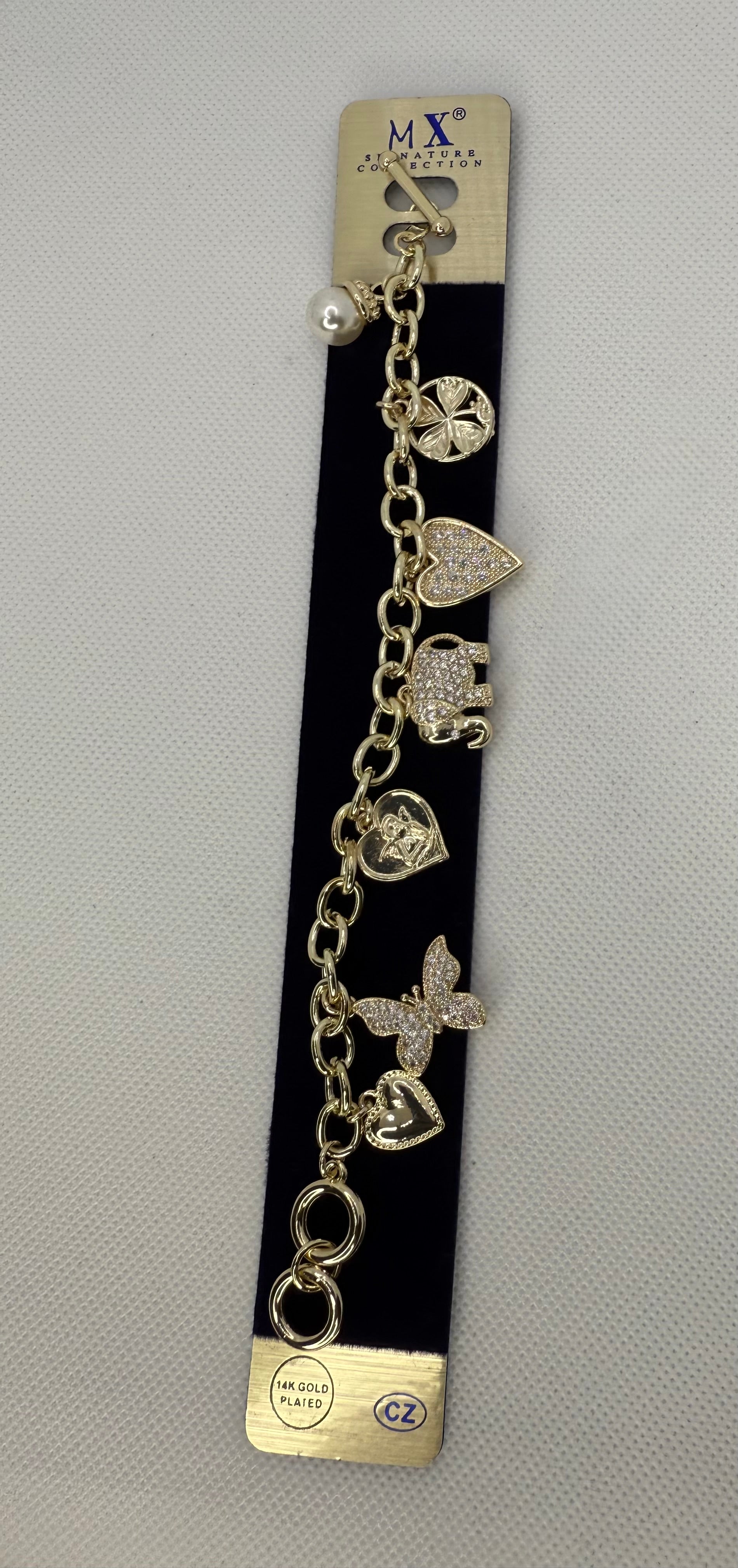This beauty comes with toggle closure, gold dipped chain with bling charms. You'll want to wear every day. Please check out the matching necklace.