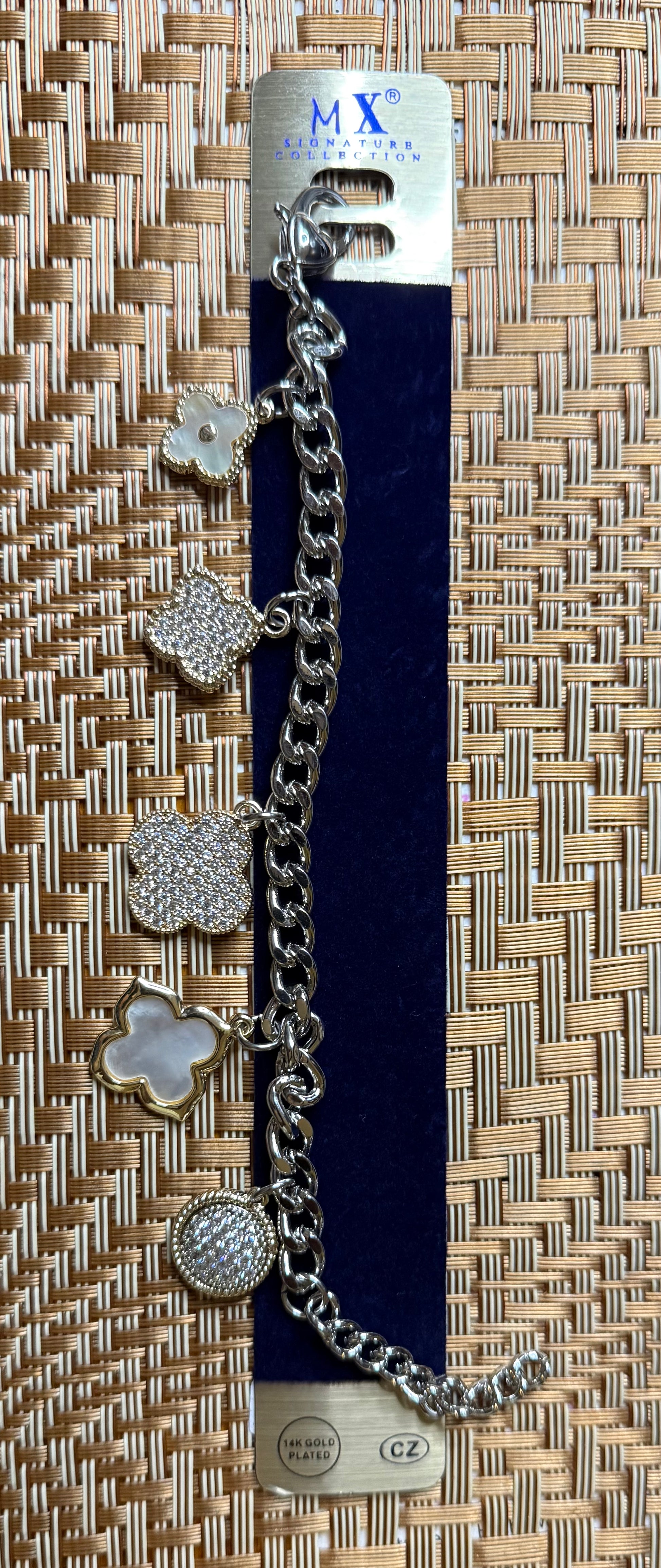 Bling clover charm bracelet; matching necklace available