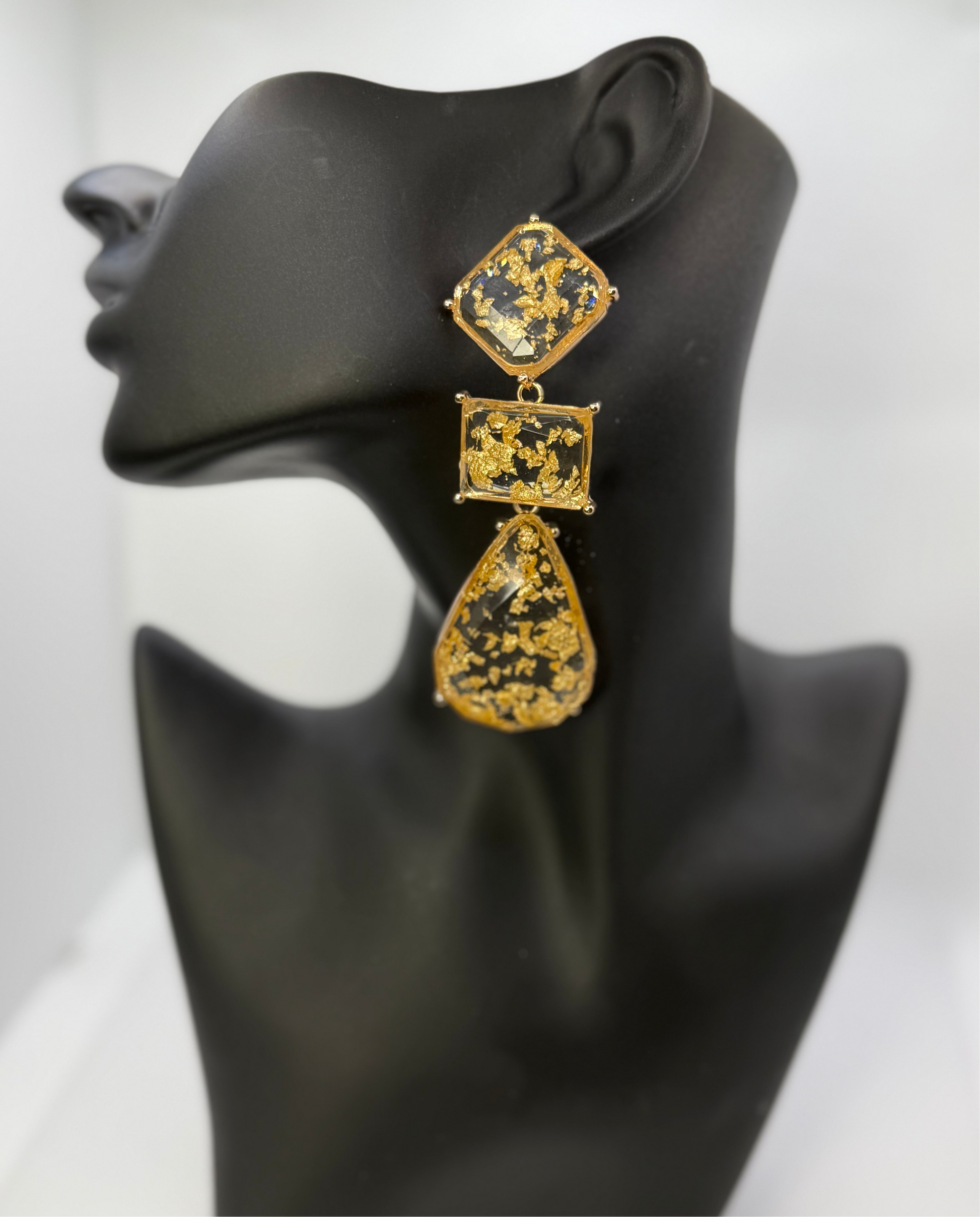 These clear with gold specks dangle earrings are absolutely beautiful!!