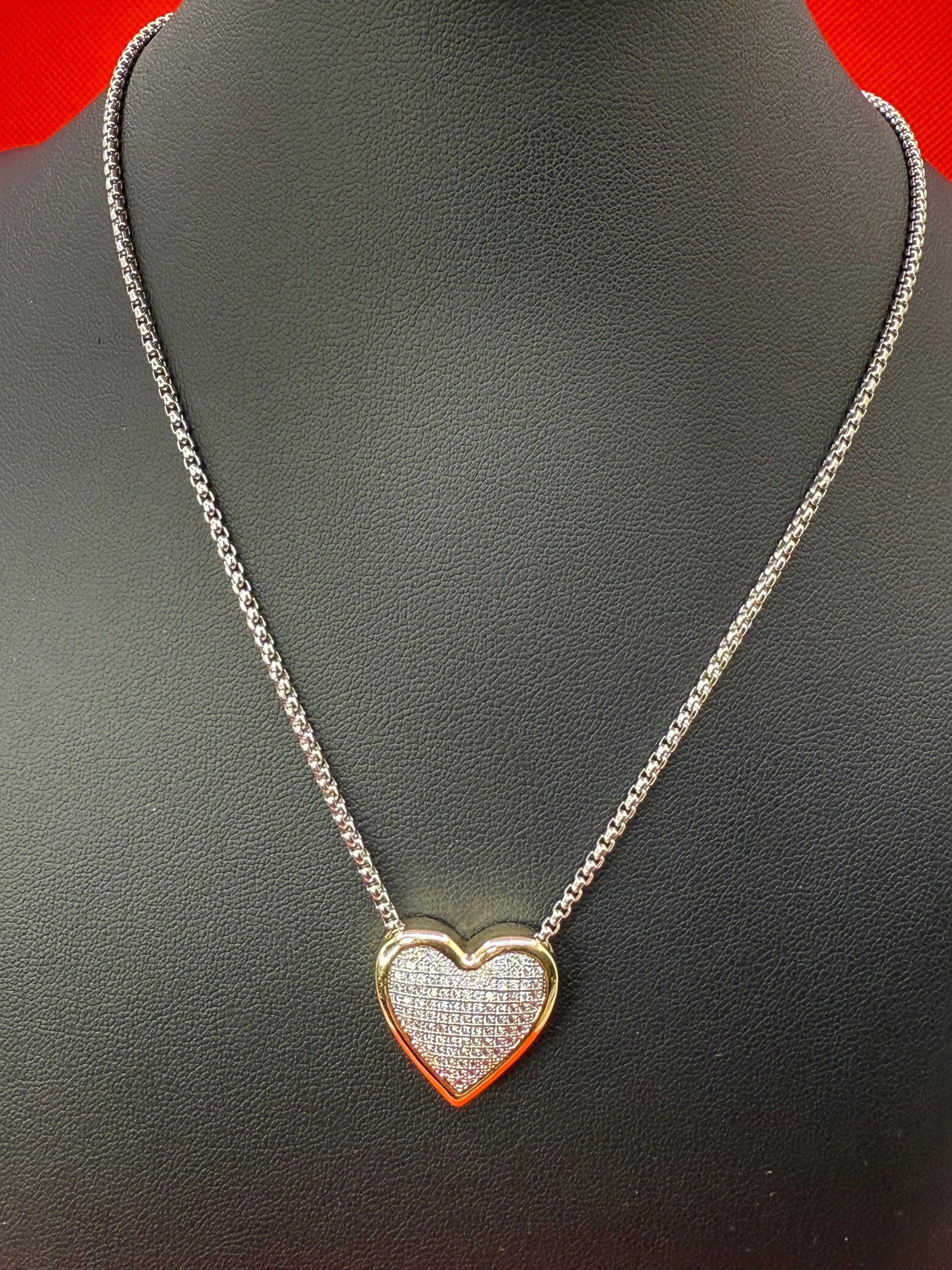 This absolutely beautiful CZ stone heart necklace on rhodium plated chain with gold plating on the heart. MX signature collection