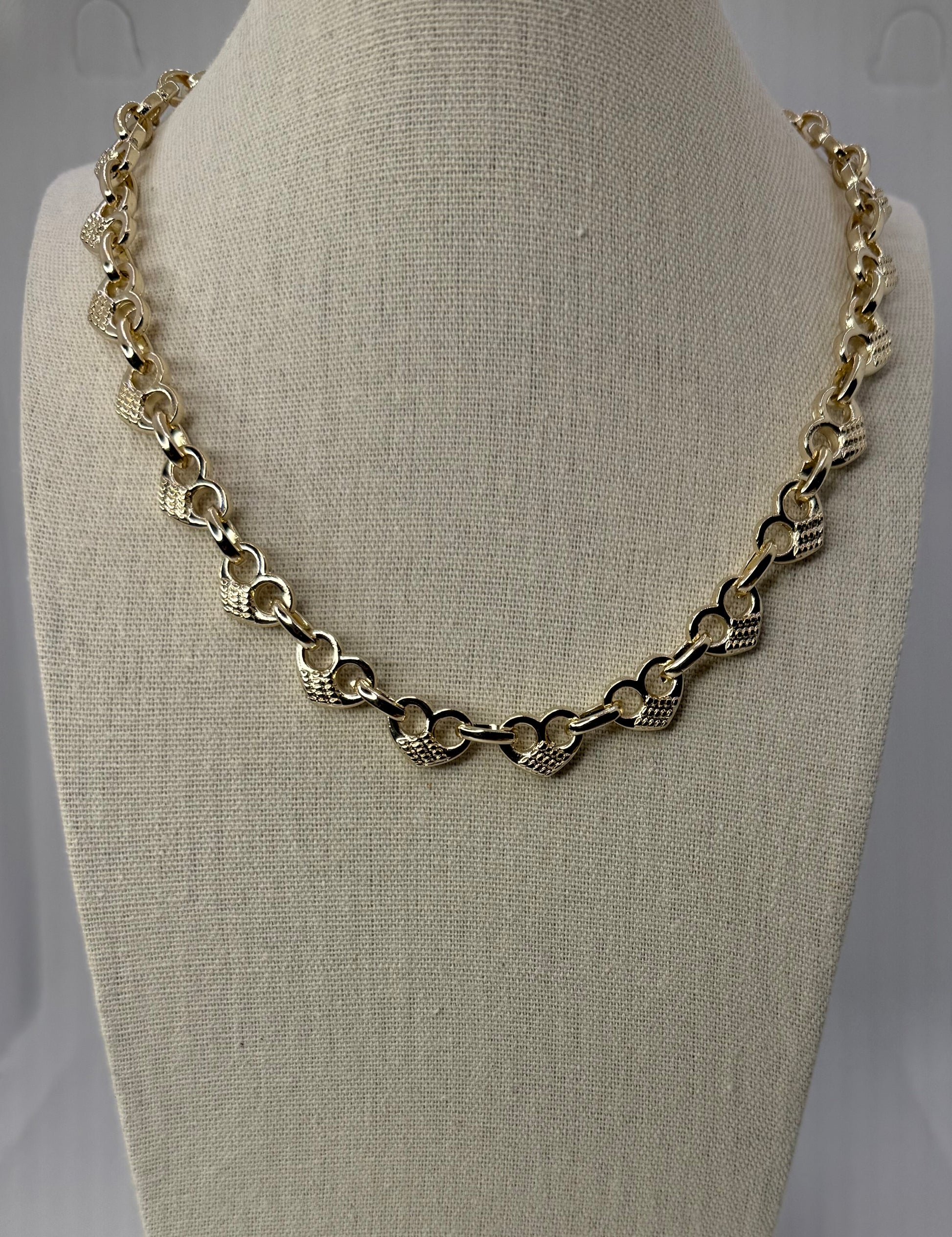 Check out the matching necklace and bracelet: open heart, gold plated