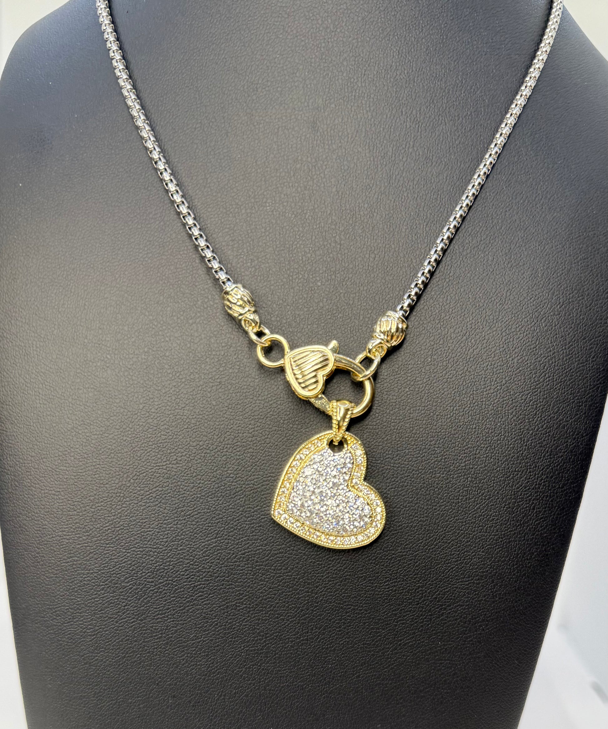You'll absolutely love this CZ heart pendant on gold and rhodium plated chain. Look at the beautiful heart clasp.