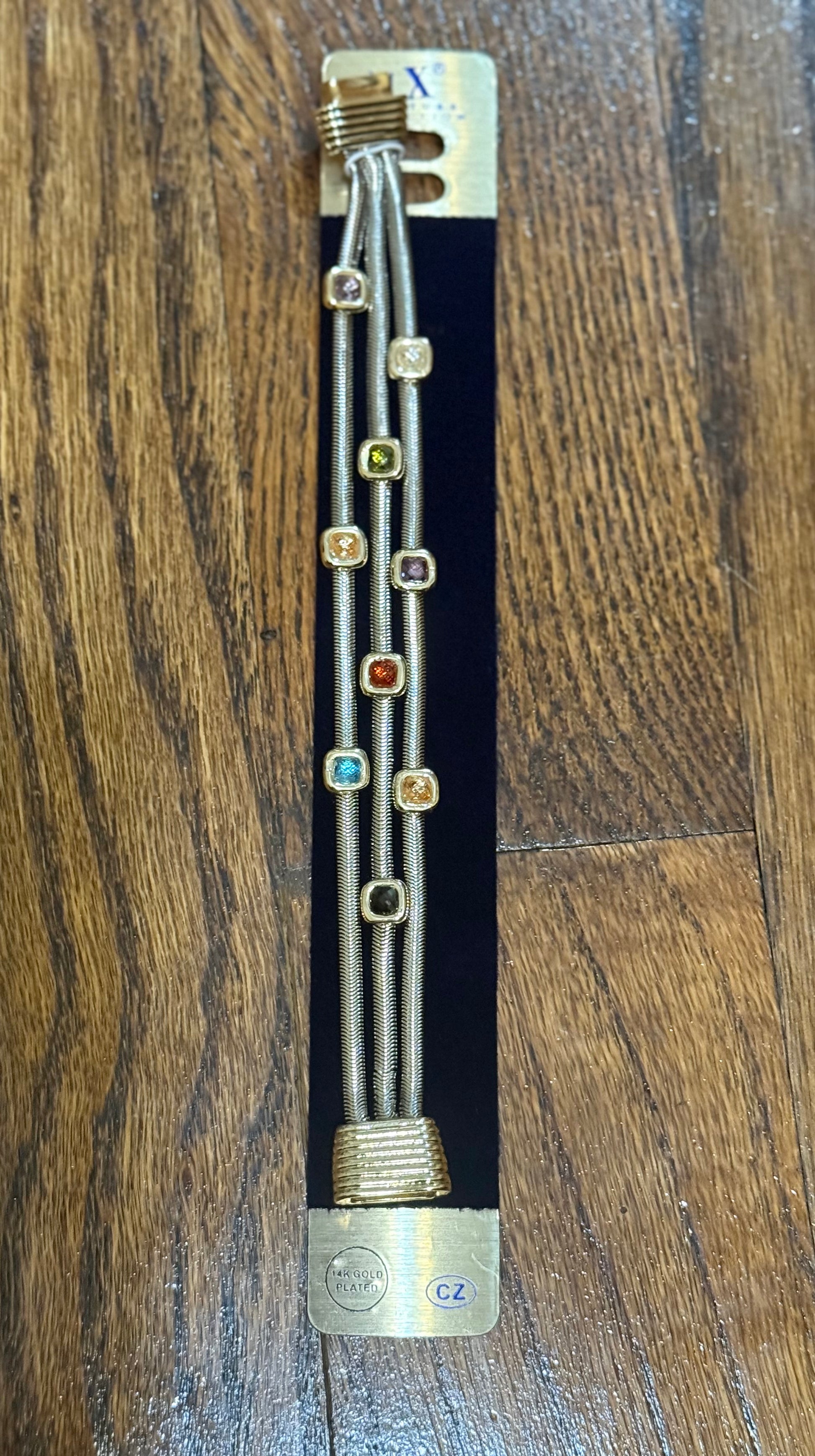 This multi colored stone bracelet is silver plated with a magnetic closure