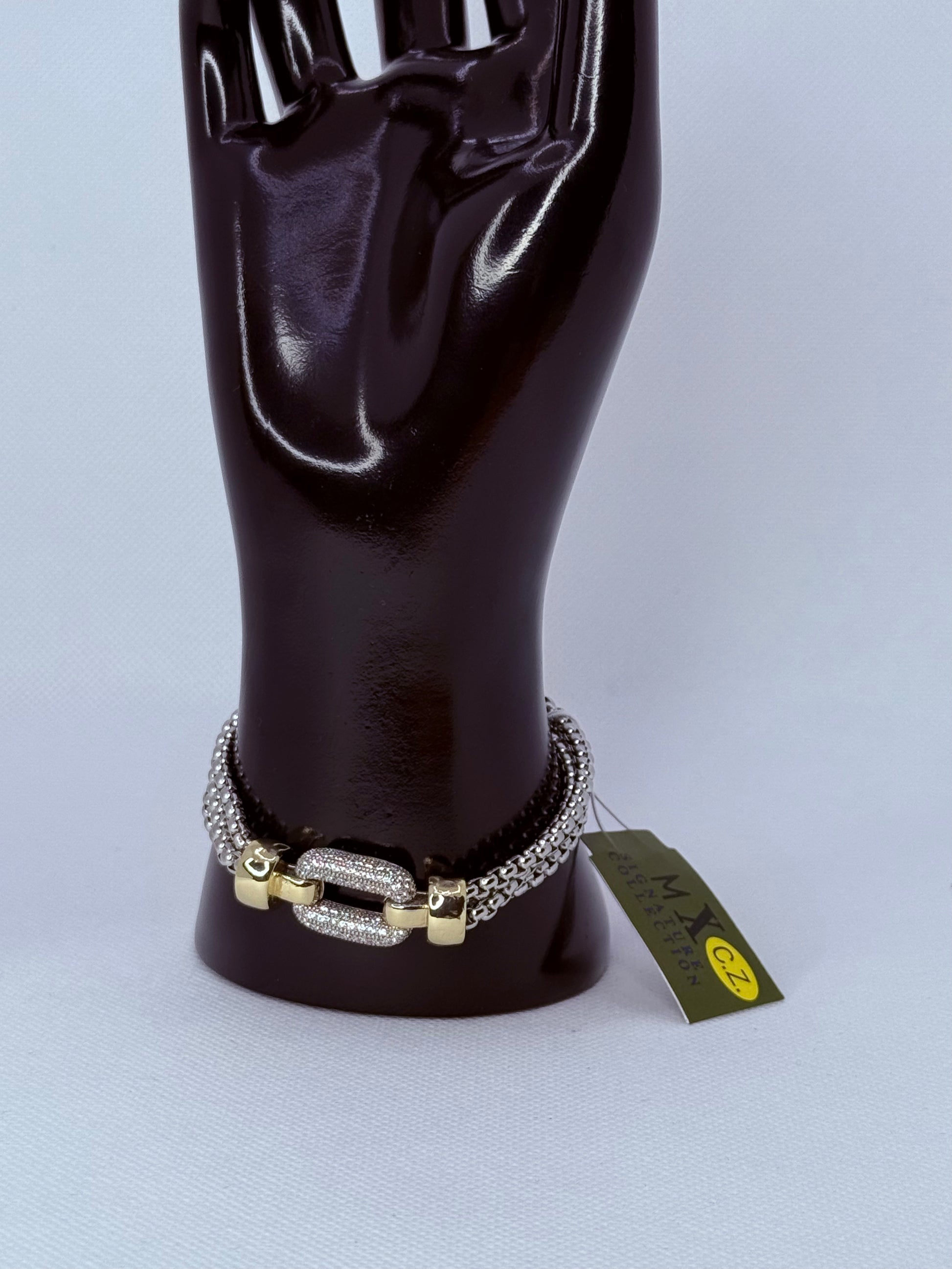 Rhodium plated triple chain magnet bracelet with CZ open square pendant