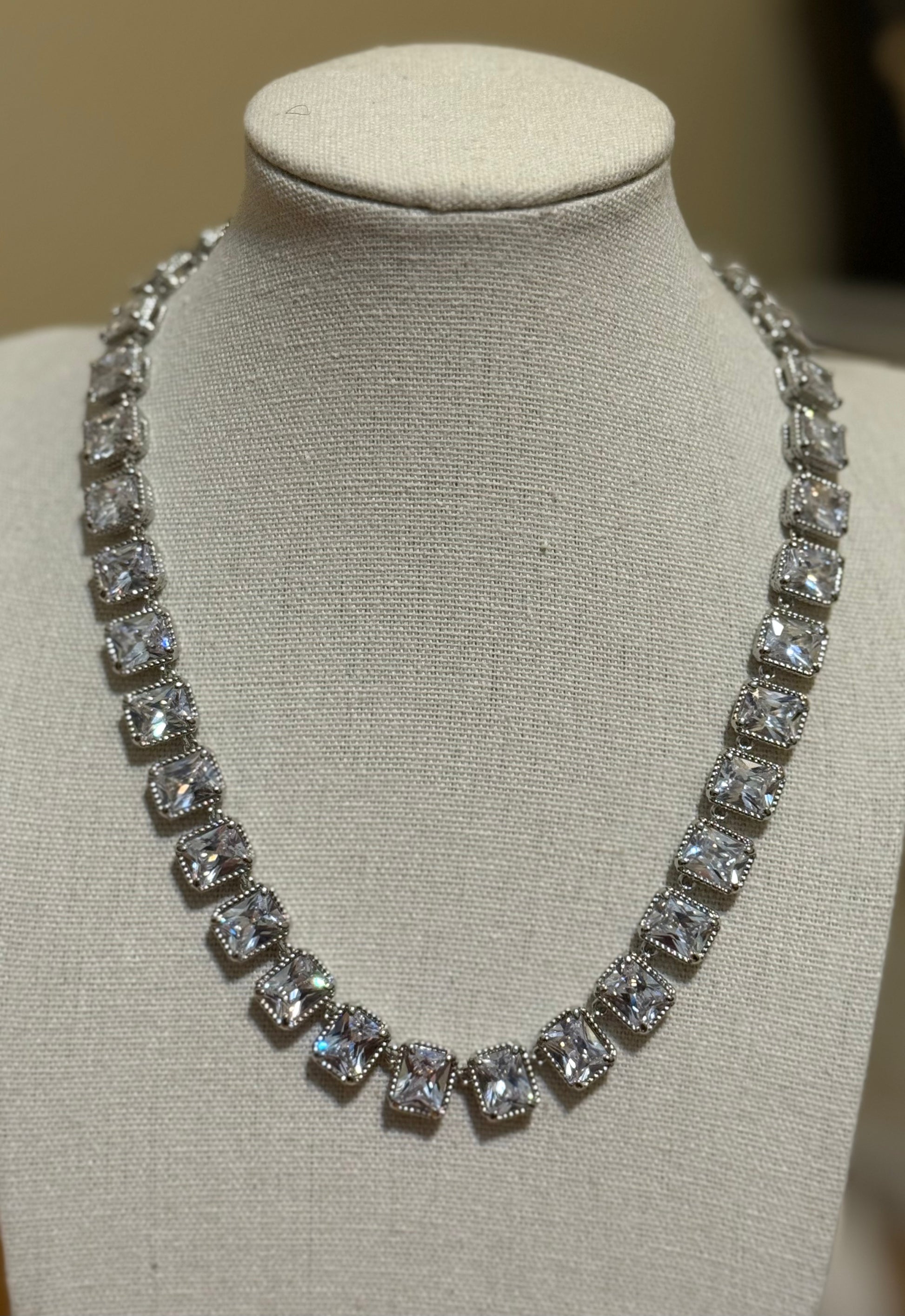 White gold dipped CZ stone necklace