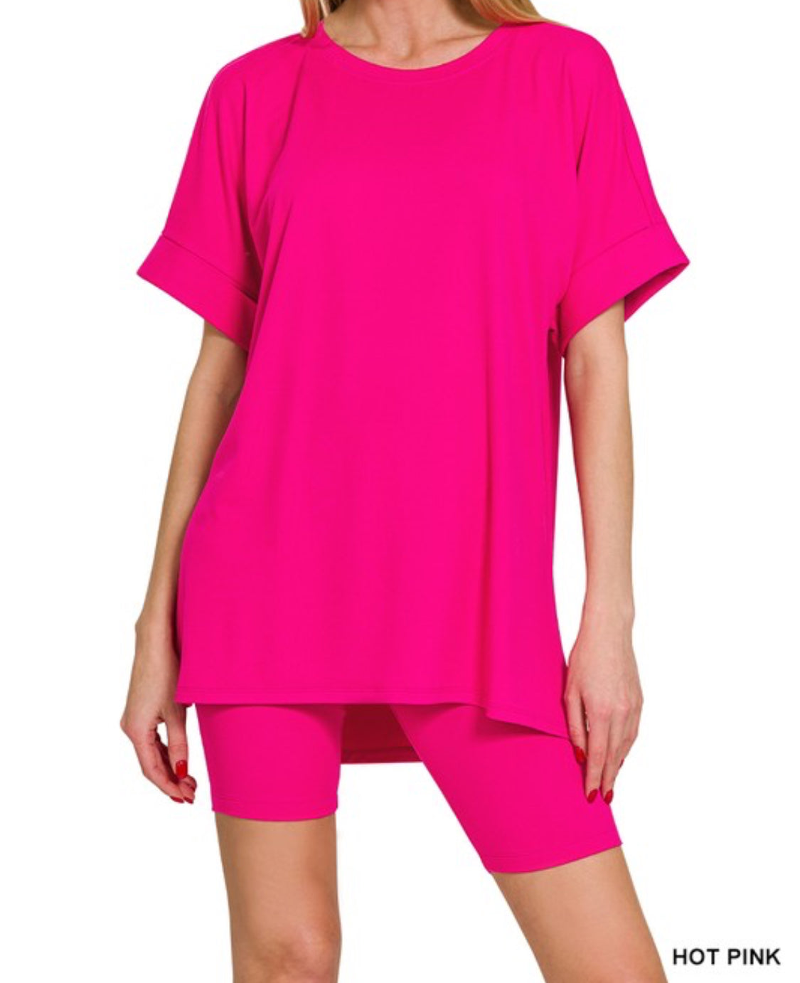 You will absolutely love how comfortable and soft the sets are; you will want to wear them every day. Shirt features crew neck with side slits and hi-lo hem.