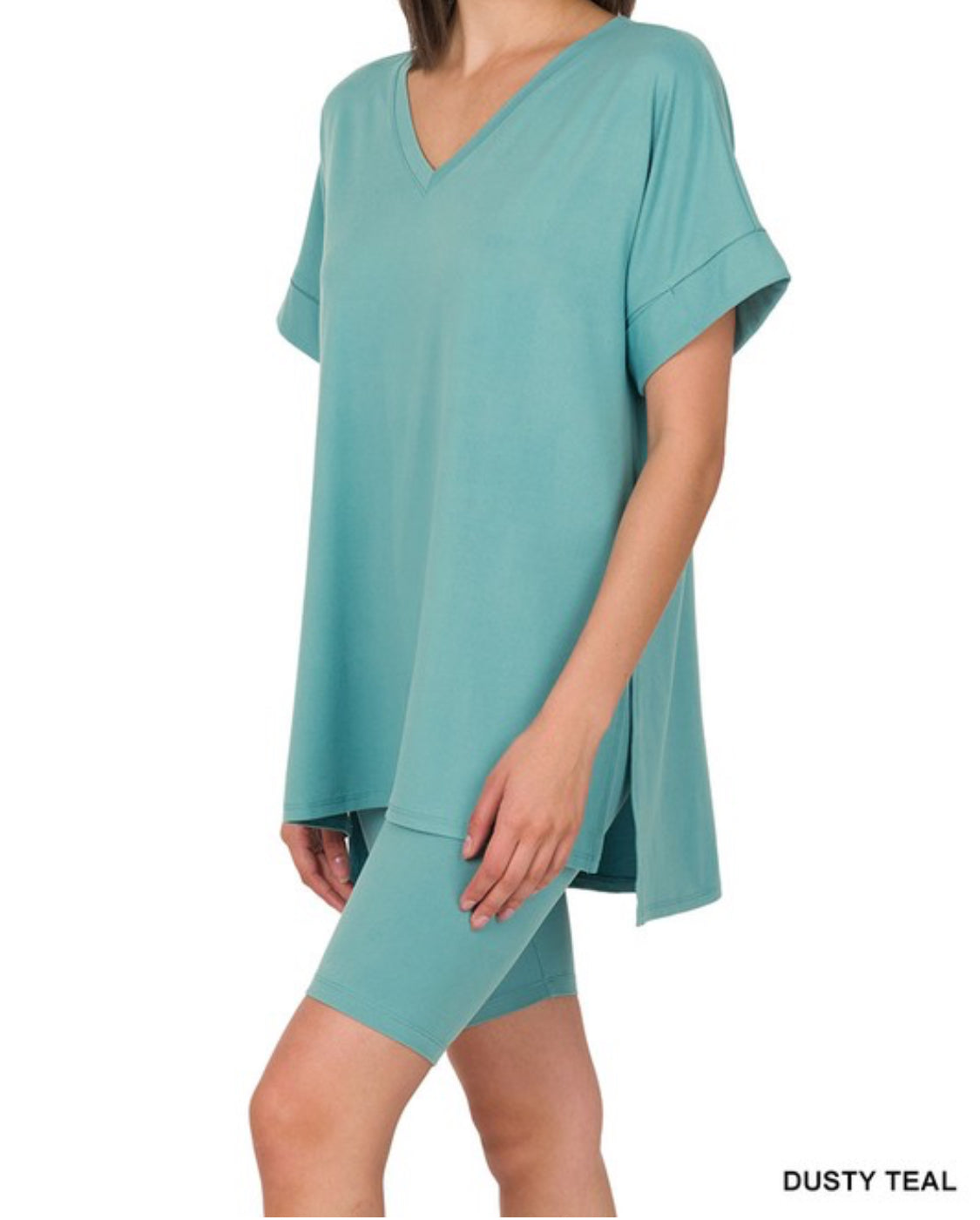 You will absolutely love how comfortable and soft the sets are; you will want to wear them every day. Shirts feature V-neck with side slits and hi-lo hem. You want these in all colors.